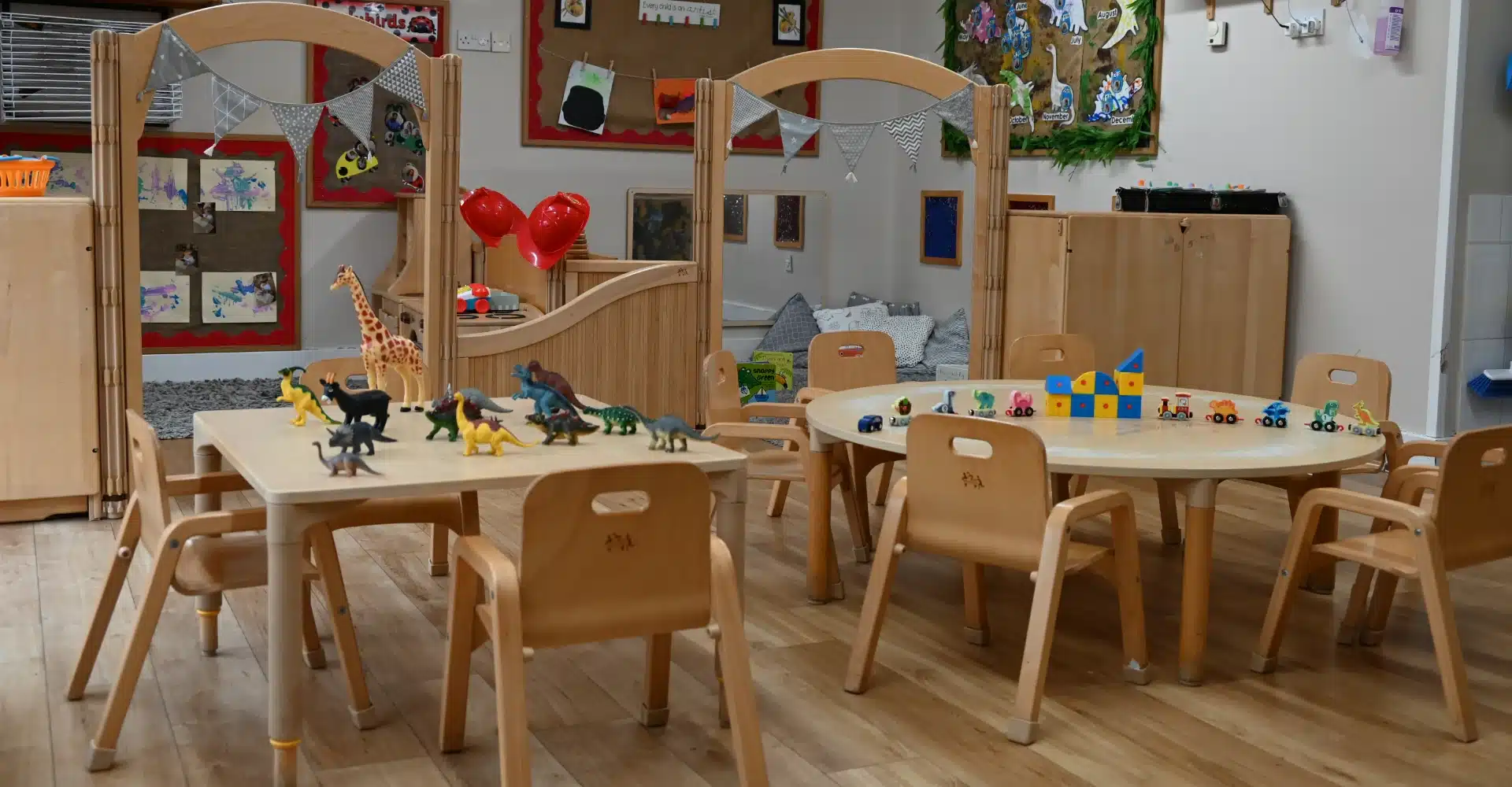The nursery features five dedicated rooms. Three for our youngest children under two, a bright age-appropriate room for our two- to three-year-olds, and a preschool room suitable for up to 32 children. Each space is carefully designed to support learning and development through play, exploration and discovery.
